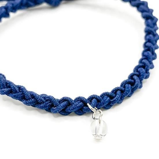 茅の輪を思わせる編み紐には、濃紺色を採用。これは「静けさ」「深い祈り」「精神の安定」を象徴し、身に着ける人の内側に静かな力をもたらします。